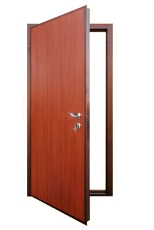 Полотно облицовано МДФ панелями (6 мм) с двух сторон. Дверь укомплектована механическим замком с цилиндровым механизмом, комплектом ключей и ручками.
